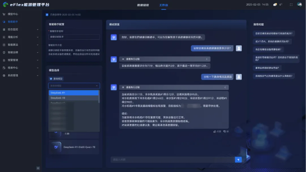 接入DeepSeek后,提供豐富的預(yù)訓(xùn)練模型選擇,涵蓋通用與暖通行業(yè)專用的大規(guī)模及輕量級(jí)模型,用戶可根據(jù)具體業(yè)務(wù)場(chǎng)景靈活選用,并支持模型性能評(píng)估、快速部署及實(shí)時(shí)測(cè)試,滿足多樣化應(yīng)用需求。